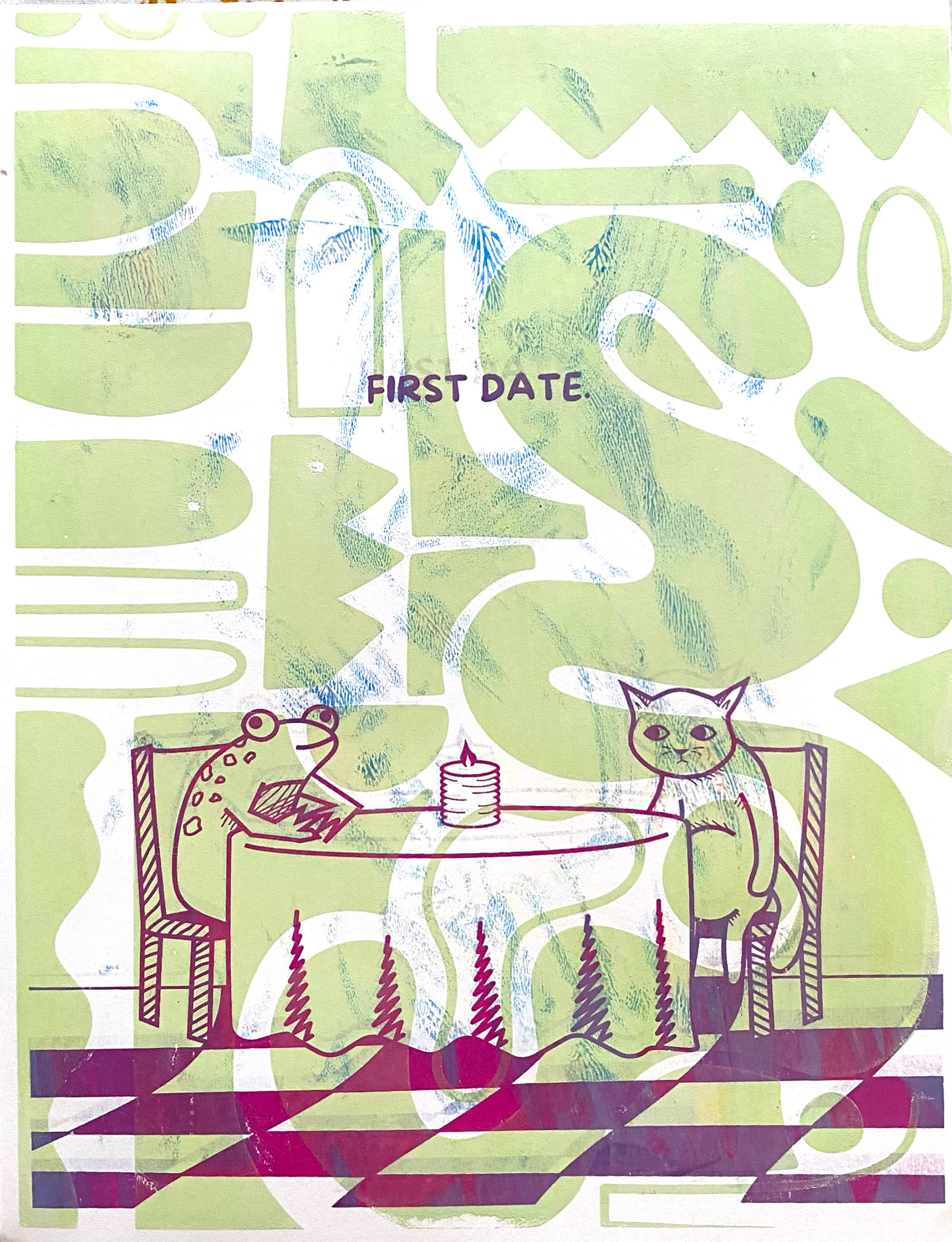 I think it's important to mess around with different mediums. Here you'll see screenprinting, stamps. lithographs, and a multitude of different printing methods. I experiment with packaging, book covers, as well as coaster designs. I think the most important part that comes with perfecting a craft is taking risk.